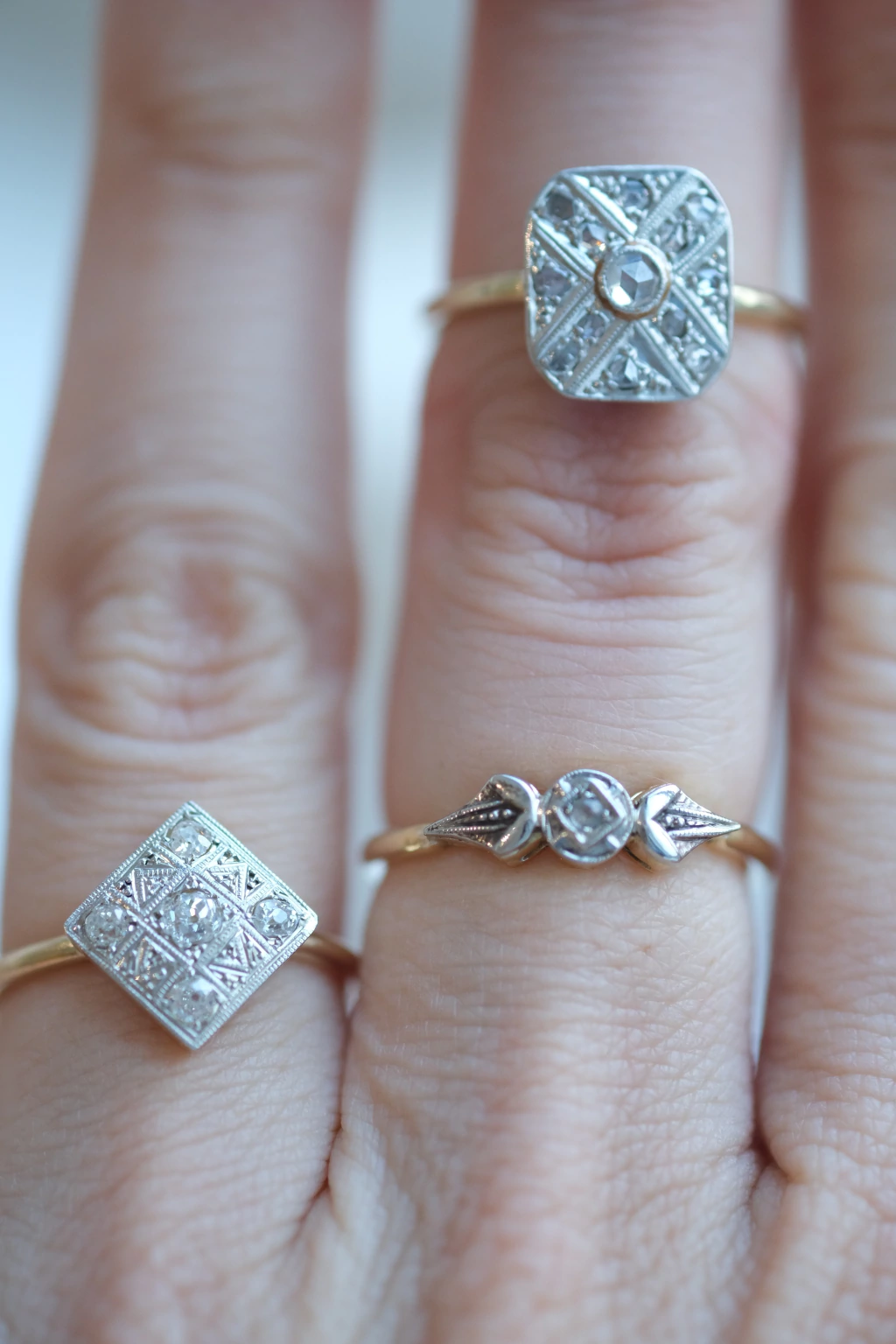 De oro 18k y diamantes corte antiguo (8 facetas).